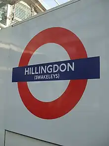 On 23 October 1933, the District line service was replaced by the Piccadilly line. Between the mid-1930s and the mid-1950s the station was named Hillingdon (Swakeleys), a name which is still displayed on the platform roundels. The goods yard closed in August 1964.[7]