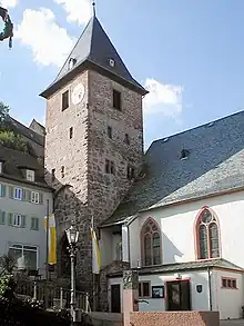 - The parish church of the Immaculate Conception was built as a Lutheran church from 1628 to 1630. In the course of the Counter-Reformation it was closed in 1636, and in 1730/31 it was re-opened as a Catholic parish church. The far older gate tower Mitteltor from 1392 serves as its belfry. The medieval town centre is still surrounded by its original town wall.