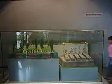 A chinampa is a floating garden armada in a lake from the Xochimilco region, once Chinampan, of Mexico. This floating garden, still in use, can have an area of up to 10 meters by 200 meters.[3]