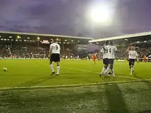 It is impossible to talk about Fulham's history without mentioning probably the single most influential character in Fulham's history, Johnny Haynes.[6] "Mr. Fulham" or "The Maestro", as he later came to be known, signed for the Cottagers as a schoolboy in 1950, making his first team debut on Boxing Day 1952 against Southampton at Craven Cottage. Haynes played for another 18 years, making 657 appearances (along with many other club records too), his last appearance for Fulham coming on 17 January 1970. He is often considered as the greatest player in Fulham history,[7] and never played for another team in Britain.[8] He gained 56 caps for England (22 as captain),[9] with many being earned while playing for Fulham in the Second Division. Haynes was injured in a car accident in Blackpool in 1962, but by his own admissions never regained the fitness or form to play for England again, missing out on England's victory in the 1966 FIFA World Cup, which he would have stood a chance of being selected for.[10] The Stevenage Road Stand was renamed in his honour after his death in a car crash in 2005.