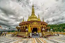 Like in other Southeast Asian countries, medieval Buddhism in Laos included Mahāyāna Buddhism, Tantric Buddhism and Theravāda Buddhism.[76] The political influence of Southeast Asian Theravāda helped make it the main religion of the Laotian kingdom of Lan Xang (1353–1707), which had close ties to the Thai and Khmer realms.[77] Like in other regions, Laotian Theravāda also retained numerous "animistic" elements like the veneration of local spirits (lak muang) and magical objects (sing saksit). These practices were often part of Buddhist temples.[78] Lao kings like Vixun (r. 1500 - 1520) adopted the Dharma king model of Theravāda Buddhism, promoted the establishment of temples (such as Vat Simuang and Pha That Luang) and palladiums (sacred protectors) such as Phra Bang.[79]