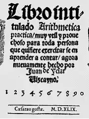 - ↑ “Conpusicion de la arte de la arismetica y juntamente de geometría" written by Juan de Ortega