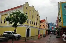 Within a generation, the settlers turned to shipping and trading, as soil conditions on the island were unfavorable to farming.[3] Unable to grow their own food, colonists began trading with nearby Spanish colonies in Colombia and Venezuela.[5] Their interests spread to banking and commerce,[4] importing goods like cloth, tools, utensils and weapons from relatives in Europe and exchanging or selling them to obtain foodstuffs, hides, tobacco and wood from other colonies. The change in their employment, also brought about a relocation of the community into the walled city of Willemstad with its easy access to the harbor. Utilizing architectural styles with which they were familiar, these merchants built homes similar to those they had left in Amsterdam, which had living quarters on the upper floors and warehouses for their goods on the lower levels.[5] Their success led to them lending support to other Sephardic communities in North and South America.[4]