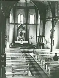 Hjørundfjord Church (Norwegian: Hjørundfjord kyrkje) is a parish church of the Church of Norway in the municipality of Ørsta in Møre og Romsdal county, Norway. It is located in the village of Sæbø on the west coast of the Hjørundfjorden. It is the church for the Hjørundfjord parish which is part of the Søre Sunnmøre prosti (deanery) in the Diocese of Møre. The white, wooden church was built in a long church design in 1880 using plans drawn up by the architect Johannes Henrik Nissen. The church seats about 480 people.[1][2]