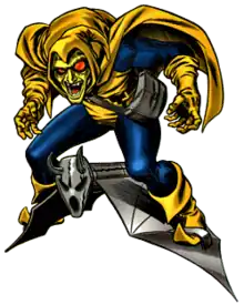 - ↑ Shooter, Jim (w), Milgrom, Al (p), Leialoha, Steve (i). "Charge Of The Dark Brigade!" Secret Wars II, no. 7 (January 1986). Marvel Comics.