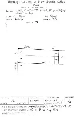 - ↑ "HERITAGE ACT, 1977". Government Gazette Of The State Of New South Wales. No. 105. New South Wales, Australia. 19 July 1985. p. 3660. Retrieved 21 July 2018 – via National Library of Australia.