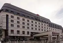 The structure was planned since 1993 and its construction was delayed several times. The building had to include the entrance to the underpass under the square and coincide with its renovation. The building's investor was I.P.R. Slovakia, a Slovak-Cypriot company.[1] Construction started in October 2004, when traffic restrictions took place in the form of blocking the rightmost driving lane at the square (coming from Štefánikova Street), blocking the major busy street for an astonishing 3 years, until August 2007. The building was completed in 2008, but without finishing the pedestrian underpass. Reconstruction of the underpass was carried out by the Astoria Passage company, a sister company of the Astoria Palace building investor, to which the underpass was rented out for 10 years.[2] After the long delayed opening of the underpass, it was found out that the escalator was making loud noises. Moreover, the underpass remained much the same as when built under socialist realism, with one exception being a significant reduction of space to make more room for small shops. This also meant that there was still no escalator leading to the Presidential Palace and the whole underpass remained off limits to the handicapped, although special platform elevators for the handicapped have later been installed in November 2009.
