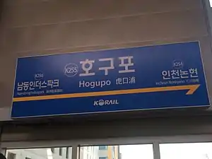 Hogupo Station is a station on the Suin–Bundang Line as a part of the Seoul Metropolitan Subway system as of June 30, 2012. It is located in Nonhyeon-dong, Namdong-gu, Incheon.[1]