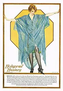 Holeproof Hosiery was a Milwaukee, Wisconsin textile firm that was founded in 1901. The business was built primarily through earnings which were left to aggregate in the company. Its advertising expenses exceeded $500,000 after 1901, making it a brand name recognized worldwide. The business produced men's and women's hosiery, underwear, lingerie, and men's pajamas.[1] From 1916 - 1925 Holeproof Hosiery sales increased from $2,037,000 to $9,220,000.[2] Net sales totaled $24,435,342 in 1954.[1]