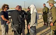 ![]() Hayim Katsman (far left), a peace activist killed in the Hamas attack, seen here volunteering in the West Bank to ease tensions between settlers and Palestinians. | |