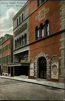 - ↑ Boston Athenaeum. "Theater history: Hollis Street Theatre (1885-1935)". Retrieved 2012-04-09.