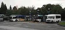 On August 27, 2023, a temporary closure of the transit center's bus station, expected to last about three years, went into effect for the start of work on a project to build a 12-story apartment building on the site, comprising affordable housing units, community space and some business space, and a new bus roadway and stops in the final stage of the work.[3][4][5] The project is known as the "hollywoodHUB" development.[4] Buses are temporarily serving stops on two streets near the site, but the project includes construction of new bus facilities on a portion of the old site which is due to reopen as a pedestrianized section (with bus roadway) of NE 42nd Avenue in 2026.[3] The Hollywood MAX station is to remain open during the project.[5]