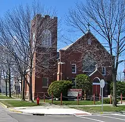 Holy Family Church is a historic church at 1840 Lincoln Street in North Chicago, Illinois. The church was built in 1914-15 for North Chicago's Roman Catholic congregation, which was formed in 1901. Architect William F. Gubbins designed the Late Gothic Revival church. The church's design includes a front-facing gable with a large stained glass window, pointed arch windows, and a square bell tower with large louvered windows, all typical features of Gothic Revival architecture. The Catholic congregation used the church until 1991; it is now occupied by the Emmanuel Faith Bible Christian Center.[2]