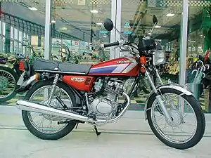The Honda CG125 or Honda CG is a commuter motorcycle made by Honda of Japan. It was in production from 1976 to 2008 in Japan and has been in production since 1992 in Pakistan. The CG was originally manufactured in Japan, but the source for the European market was eventually moved to Brazil in 1985, and to Pakistan and Turkey in 1992 for the W and M models. The CG125 is powered by a 124 cc (7.6 cu in) four-stroke, overhead valve, single-cylinder engine that has changed little over the years.