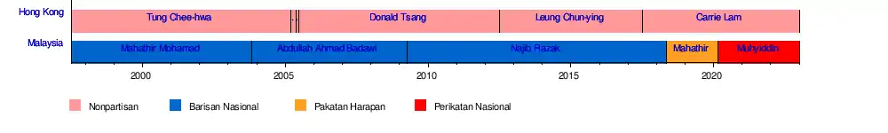 First Leader | Tung Chee-hwa | Abdul Rahman of Negeri Sembilan (Monarch) Tunku Abdul Rahman (Prime Minister) |