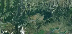 The Hope Fault branches off from the Alpine Fault south of Hokitika and then runs in a nearly straight line for about 230 kilometres (140 mi) to the east coast of South Island just north of Kaikōura, with an offshore continuation of at least 13 kilometres (8.1 mi). It consists of several segments, from the southwest end, the Kelly Fault, then the Hurunui, Hope River, Conway and Seaward segments.[1] It takes its name from the Hope River, which follows the trace of much of the Hope River segment.
