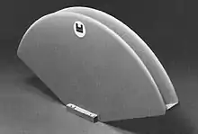 The tractrix horn is very similar in many respects to the exponential horn and has gained adherents among DIY horn enthusiasts, audiophile consumers, and some manufacturers.[20] It uses a curve formula derived by assuming that a tangent to any point on the horn's inner curve will reach the central axis of the horn with a line segment of set length. At the mouth, the tangent line segment becomes perpendicular to the axis and describes the radius of the mouth. This horn concept was studied by Paul G.A.H. Voigt in the mid-1920s and patented in 1927.[21] The size of the tractrix horn is generated by specifying the desired low frequency "cutoff" or limit which will determine the mouth diameter.[20] Two incremental improvements over the exponential horn include slightly better support for low frequency extension and a somewhat broader high-frequency coverage pattern.[20]