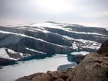 The Hornelen Basin is a sedimentary basin in Vestland, Norway, containing an estimated 25 km stratigraphic thickness of coarse clastic sedimentary rocks of Devonian age. It forms part of a group of basins of similar age along the west coast of Norway between Sognefjord and Nordfjord, related to movement on the Nordfjord-Sogn Detachment. It formed as a result of extensional tectonics as part of the post-orogenic collapse of crust that was thickened during the Caledonian Orogeny towards the end of the Silurian period. It is named for the mountain Hornelen on the northern margin of the basin.