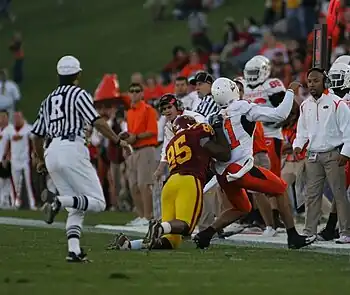 The tackle was made illegal in the CFL for the 2007 season.[5] The horse collar tackle was legal through the 2007–2008 season in college football but was banned by the NCAA after criticism from pundits and coaches for the 2008–2009 season as part of a package that adopted several NFL rules into the college game.[6]