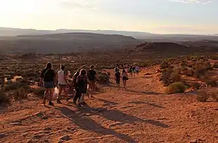 It is accessible via hiking a 1.5-mile (2.4 km) round trip from a parking area just off U.S. Route 89 within southwestern Page.[1] The land south of the Bend's parking area, trail, and overlook are on the Navajo Nation territory.[4]