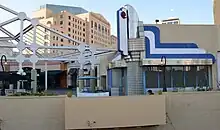 Local developer Ernest Hahn signed an exclusive negotiating contract in 1974 and purchased the land for US$1 million in 1978, conditioned on building parking garages.[6] Hahn also specified numerous improvements required in downtown San Diego before he could start construction, including the completion of the San Diego Trolley, the approval of the San Diego Convention Center, and the establishment of the Centre City Development Corporation.[18] In August 1979, the city council approved Hahn's plans to proceed with the construction of Horton Plaza, starting with the relocation of many businesses and the demolition of several historic structures, including the Lyceum, Cabrillo, and Plaza Theatres[lower-alpha 1] and the Horton Grand Hotel;[18] several buildings that were on the National Register of Historic Places were removed and/or relocated to make way for the planned retail center.[lower-alpha 2][24] Due to numerous setbacks and resistance from preservation groups, construction did not begin until 1982.[25]