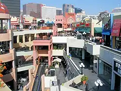 Horton Plaza was a five-level outdoor shopping mall in downtown San Diego. It was designed by Jon Jerde and was known for its bright colors, architectural tricks, and odd spatial rhythms, occupying 6.5 city blocks adjacent to the city's historic Gaslamp Quarter. Opening in 1985, it was the first successful downtown retail center since the rise of suburban shopping centers decades earlier.[2]