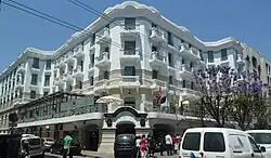 Hotel Majestic is a historical hotel on the Avenue de Paris in Tunis, Tunisia. It was built in 1914 and is noted for its Art Nouveau architecture with a white facade and gently curved corners.[1] The hotel is four storeys high and the first floor has a terrace. The hotel overlooks the Jardin Habib Thameur.