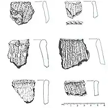 Non-pottery artifacts recovered from the site included:[1]