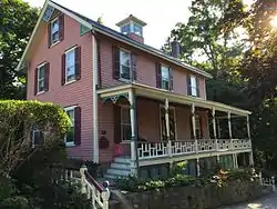It is a two-story, clapboard-sided building on a brick foundation with a gable roof and a cupola in the Late Victorian style.[2]