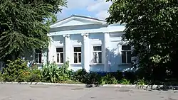 The house is one-story, it was designed taking into account the cellar for grain storage. The facade of the house is divided into three parts which differ from each other in architectural receptions. Four semi-columns allocate the central part of a facade, they support a pediment with eaves which are decorated by croutons. The general traction eaves settle down over side windows, and windows on the center are decorated with a filyonchaty ornament. The main entrance to the house settled down not on the center, and at the left.[2]