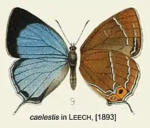 • Howarthia caelestis (Leech, 1890) ) includes H. c. elegans Sugiyama, 1997 and H. c. derani Koiwaya, 2000 West China, Myanmar