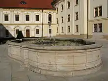 Hradisko Monastery or Monastery Hradisko (Czech language: Klášter Hradisko or Klášterní Hradisko, or simply Hradiště; colloquially also: Moravský Escorial, English: Castle Monastery or Hillfort Monastery) is a former monastery and a former village north-east of the city of Olomouc, nowadays a suburb of Olomouc. Originally a Benedictine monastery, from the mid-12th century a Premonstratensian monastery, located in the historical principality of Moravia and Margraviate of Moravia, now part of present-day Czech Republic. The large complex occupies an area of more than one hectare, since 1995 declared a cultural heritage site and is occupied by the Olomouc military hospital.