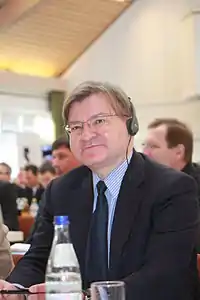 Hryhoriy Mykhailovych Nemyria (Ukrainian: Григо́рій Миха́йлович Неми́ря; born 5 April 1960, Donetsk)[1] is the First Deputy Chairman of the Foreign Affairs Committee of the Parliament of Ukraine and Deputy Chairman of the Batkivshchyna.