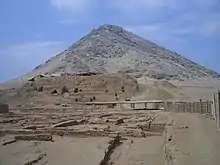 Huaca de la Luna ("Temple or Shrine of the Moon") is a large adobe brick structure built mainly by the Moche people of northern Peru.[1] Along with the Huaca del Sol, the Huaca de la Luna is part of Huacas de Moche, which is the remains of an ancient Moche capital city called Cerro Blanco, by the volcanic peak of the same name.