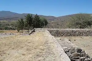 In addition to Structure A, other structures were found around the site. It is important to point out that according to Purépecha architectonic tradition, temples and their foundations always were built on top of natural hills, over an artificial platform, or, as in the Huandacareo case, over platforms and plazas, for this purpose they built retention walls embedded to the mountain slopes.[4]
