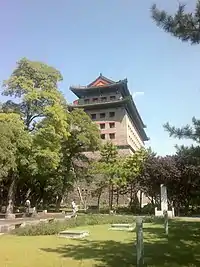 - Huashi Mosque, at No. 30 Huashi Street near Xiaoshikou, is the spiritual home of the local Hui Muslim community.[2][8] The mosque was founded in 1415 in the early Ming dynasty, possibly by Hui generals Chang Yuchun or Hu Dahai.[2] The mosque compound occupies an area of 2,000 m2 (22,000 sq ft), including a main hall of 1,000 m2 (11,000 sq ft) that can accommodate 1,000 worshippers.[9] Among relics housed in the Huashi Mosque are gifts of calligraphy from the Kangxi, Yongzheng and Qianlong emperors of the Qing dynasty.[2]