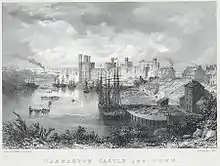 Hughes's major woodcuts appear in his Beauties of Cambria (Carmarthen, 1823) in which all the views were engraved by himself, 58 from his own drawings; he has been compared to Thomas Bewick. He also made lithographs of Welsh scenery. He made caricatures of the commissioners of education sent to Wales (1846–47). Some of his sketches, including a map of North Wales under the name Dame Venedotia, Pitt's Head near Beddgelert, and others of the neighbourhood of Snowdon, were published at Caernarfon. His sketch of Pwllheli and St. Tudwall's Road is in Humphrey's Book of Views.[2][3]