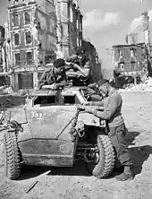 The Humber Scout Car was a British light scout car used in the Second World War. It entered service in 1942 and continued in production until 1945. Designed for reconnaissance, and liaison between armoured units, it provided protection only against light arms fire, so was not a front line vehicle. More importantly it was small and fast and could quickly evade trouble. It became the shape format for the post war Ferret armoured car which began production in 1952.