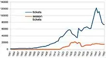 year | tickets | season tickets | staff |