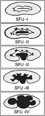 The Society of Fetal Ultrasound (SFU) has developed a grading system for hydronephrosis, initially intended for use in neonatal and infant hydronephrosis, but it is now used for grading hydronephrosis in adults as well:[15]