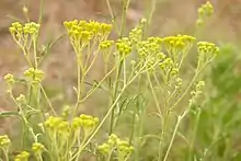 Hymenothrix wislizeni is an annual herb up to 70 cm (28 in) tall. Each head has 15-30 yellow or cream-colored disc flowers surrounded by 8-12 yellow ray flowers.[4][5]