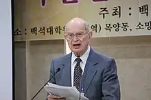 An expert in John Calvin, he was Albertus C. Van Raalte Professor Emeritus of Systematic Theology at Western Theological Seminary in Holland, Michigan.[1] After his retirement, he was an honorary professor and continued to write a few books on John Calvin and lecture in Europe, South Korea, and Japan. He was a Dutch American theologian who served as a missionary in Japan after receiving theological education at Western Theological Seminary in Holland, Michigan.[3] He wrote a book on Calvin's Catechism and several books and papers.[4] In his contribution to a book on Calvin in the Cambridge Theologian Series,[5] he wrote a paper on Calvin's theology. He was also president of Karl Barth Society of North America, founded in October 1972 in Toronto by a group of Canadian and American scholars of Karl Barth, inspired by his son Markus Barth.[6]