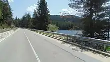 The road then passes through the village of Gelemenovo, forms a junction with the Trakia motorway at Km 90 of the motorway, and reaches the city of Pazardzhik,[2] the largest settlement along its route, where it intersects with the first class I-8 road. It passes through the western neighbourhoods of the city, crosses the river Maritsa, passes through the village of Glavinitsa and enters the western Rhodope Mountains, passing through Radilovo and Peshtera.[2] From Peshtera it enters the gorge of the river Stara reka until the town of Batak.[2] The road then reaches the Batak Reservoir and begins a long gradual ascend of the Batak Mountain, passing by the reservoirs of Beglika, Golyam Beglik and Shiroka Polyana via the Dospat Pass (1,600 m). It then passes through the Veliyshko–Videnishki ridge of the Rhodopes and descents to the valley of the river Dospat, follows the eastern shores of the Dospat Reservoir and reaches the town of Dospat.[2] The road continues for another 6 km south of the town until its terminus at the village of Barutin.[2]