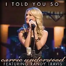 "I Told You So" is a song written and recorded by American country music singer Randy Travis from his 1987 album, Always & Forever. It reached number one on the U.S. Billboard and Canadian RPM country singles charts in June 1988. Travis had first recorded it on his 1983 album Live at the Nashville Palace under his stage name "Randy Ray". It became a local hit and one of his most requested songs at the club. In 2007, the song was covered by Carrie Underwood on her album Carnival Ride. Her version was released in February 2009 and was re-recorded and re-released in March as a duet with Travis. Underwood's and Travis' duet peaked at number two on the U.S. country charts in 2009.