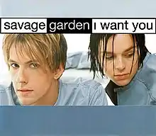 "I Want You" is a song by Australian pop duo Savage Garden. It was originally released in Australia on 27 May 1996 as the lead single from their eponymous debut album, Savage Garden (1997). The single reached number one in Canada and peaked at number four in Australia and on the US Billboard Hot 100. Much of the song's chart success in the US was the result of Rosie O'Donnell playing the song on several episodes of The Rosie O'Donnell Show.[2] In the United Kingdom, the single was issued twice, achieving its highest peak of number 11 during its initial release in 1997.