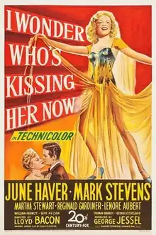 I Wonder Who's Kissing Her Now is a 1947 American historical musical film directed by Lloyd Bacon and starring June Haver, Mark Stevens and Martha Stewart. I Wonder Who's Kissing Her Now is a biographical film about Joseph E. Howard, the "writer" of the popular song of the same title.[3] Produced and distributed by 20th Century Fox, it was shot in Technicolor.