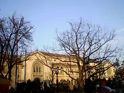 Moldova State Philharmonic, as an institution with permanent artistic activity, held its inaugural concert on 9 October 1942, conducted by George Enescu.[2] Its primary performing venue is located in the former Notre Dame de Sion (Sacré-Cœur) Institute's chapel, which is listed in the National Register of Historic Monuments.[3][4] The main auditorium seats 560, and is named after the conductor Ion Baciu; the second auditorium seats 300, and is named after the composer Gavriil Musicescu.[5] A smaller hall, with 144 seats, named after the composer Eduard Caudella, is located at the first floor of the Balș House, the same building which hosted, on 18 January 1847, the concert of the pianist and composer Franz Liszt.[6]