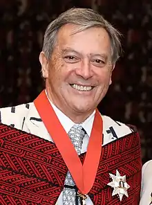 Taylor's investiture as a Knight Companion of the New Zealand Order of Merit by the governor-general, Dame Patsy Reddy, at Government House, Wellington, on 4 May 2021