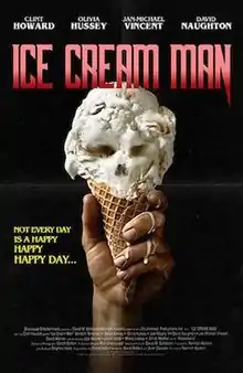 Ice Cream Man is a 1995 American direct-to-video black comedy slasher film produced and directed by Norman Apstein and written by Sven Davison and David Dobkin. The film stars Clint Howard as the title character, Olivia Hussey, Jan-Michael Vincent, David Warner and David Naughton. The film's plot follows a deranged man (named "Gregory Tudor") who was recently released from a psychiatric institution and opens up an ice cream factory where he begins using human flesh in his recipes. The film has developed a cult following among viewers. Joe Bob Briggs hosted the film on TNT when it was shown on MonsterVision. Howard himself made an appearance, discussing the film with Briggs. The film had an estimated $2 million budget and was released on DVD in 2004.