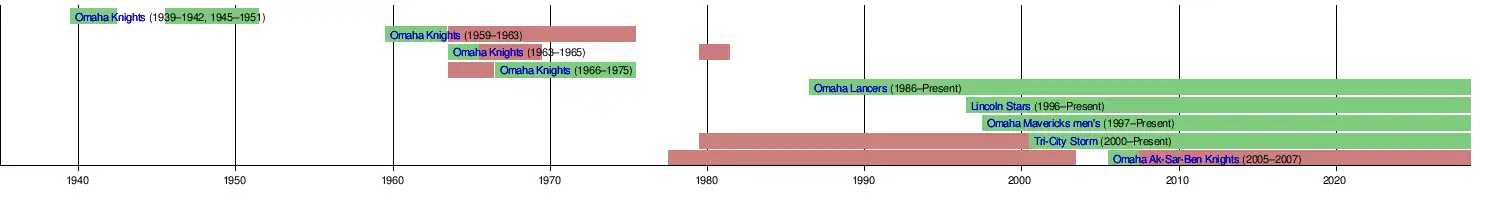 Omaha Knights (third) | Omaha | CPHL | 1963–1965 | Defunct |